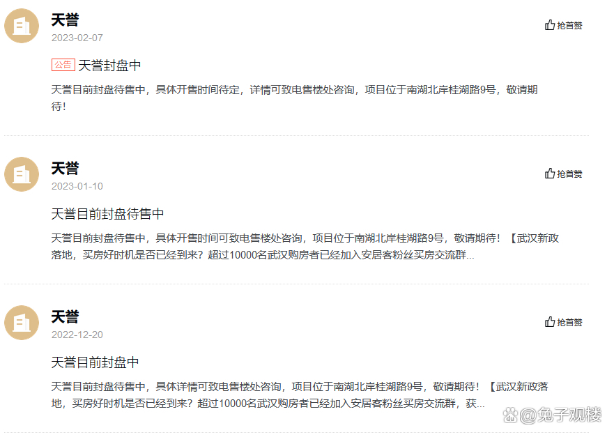 天誉,一开始叫当代天誉,后来因为武汉当代集团的资金链问题,将“当代”二字从案名中去掉了。