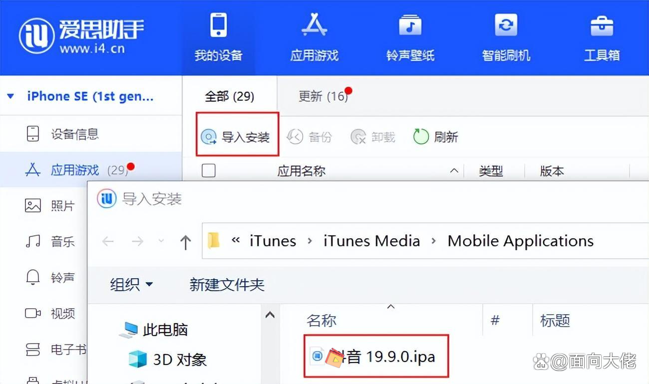 - 拿到.ipa文件之后,去爱思助手导入安装即可