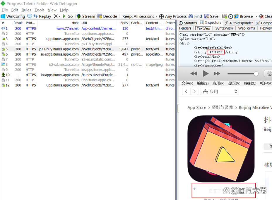 像某思助手里也有历史版本,但是像某音这种APP,助手里没有。我们可以用iTunes抓包的方法,获取历史版本。很简单: