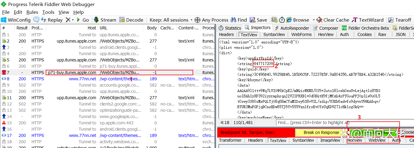 - 依旧是这种格式的一条响应(pXX-buy.itunes.apple.com),但是是红色的