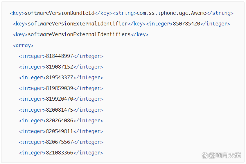 补充一下,可能现在已经找不到上面这个XML文件了,没关系,下载最新版的 ipa 文件,改文件名为 zip 解压,解压后的 iTunesMetadata.plist 文件打开,里面有一列 app 版本 id ,从上到下好像是从最老到最新版本列表~